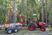 Švédský vyvážecí přívěs s pohonem kol. V provedení za čtyřkolku, malotraktor, UTV. Uvedená cena je za provedení za malotraktor a traktor s vlastním hydraulickým okruhem. Absolutní novinka od Kranman. Žádná napodobenina, ale pravý originál, vyrobený za použití oceli DOMEX 355.